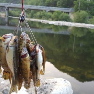 펜션 계곡서 낚시로 잡은 물고기