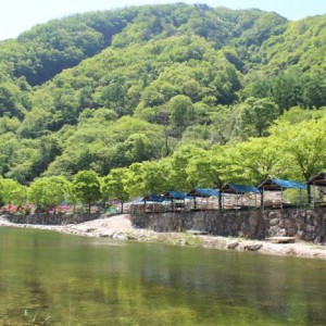 산그늘펜션 계곡과 뒷산 풍경