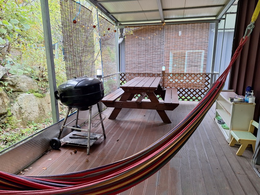 가족 1팀이 함께 편안하게 이용할 수 있도록 내부 시설을 갖췄으며, 밖에는 전용 원두막도 있어서 오붓하게 바비큐 파티를 즐길 수 있습니다.